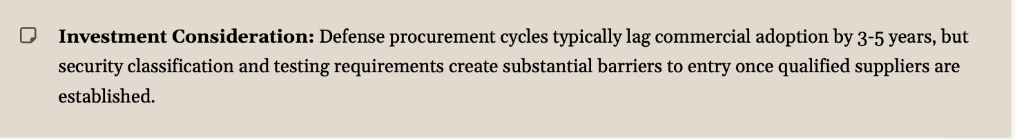 - Long development and certification timelines create substantial barriers to entry but durable competitive advantages